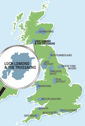 Map of the national park. Also on the map is information of the nearest town or village and click on the pins for a list of accommodation providers restaurants and things to see and do in national park. With a scenic drive from glasgow your holiday starts as soon as you leave the city.